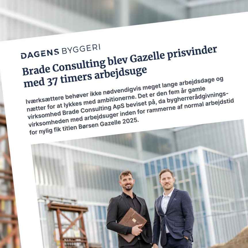Iværksættere behøver ikke nødvendigvis meget lange arbejdsdage og nætter for at lykkes med ambitionerne. Det er den fem år gamle virksomhed Brade Consulting ApS beviset på, da bygherrerådgivnings-virksomheden med arbejdsuger inden for rammerne af normal arbejdstid for nylig fik titlen Børsen Gazelle 2025.